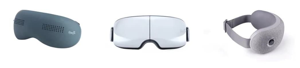 這張圖展示了多款眼部按摩器和眼部按摩儀,包括眼部按摩器推薦的熱門品牌。產品如眼部放鬆器、熱敷眼罩和眼袋按摩器,有效幫助眼部疲勞緩解,適合各種眼部護理產品,還有智能眼部按摩器供選擇